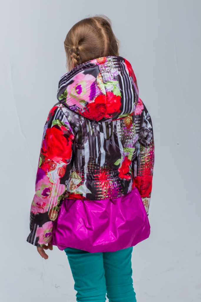 Размер: 104, 110, 116, 122, 128, 134 2 варианта цвета Верх – принт, полиэстер 100%) Подкладка (хлопок 100%), рукава (полиэстер 100%) Наполнитель - флайтекс Рукава куртки с отворотом для регулировки длины Внутренний карман на молнии