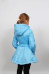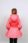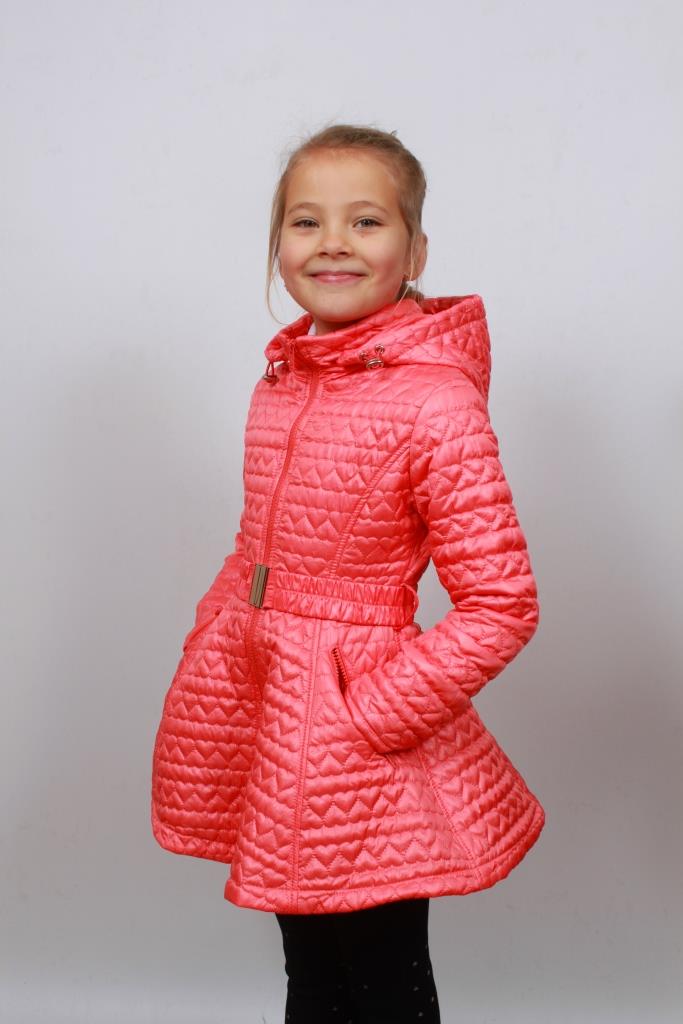 Размер: 122, 128, 134, 140, 146, 152 2 варианта цвета лосось, голубой. Верх – полиэстер 100% Подкладка (хлопок 100%, полиэстер 100%) Наполнитель - флайтекс Рукава пальто с отворотом для регулировки длины Внутренний карман на молнии Капюшон отстегивается По талии пояс с пряжкой на резинке